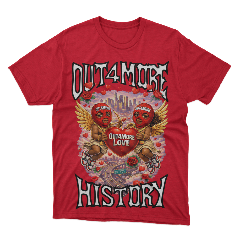 Bold love, real history. The Out4More Love tee blends streetwear energy with Valentine vibes, featuring iconic cupid artwork, city skyline details, and heart-driven graphics that rep love, loyalty, and legacy. Finished with “Since 1983” on the back, this piece represents timeless love and the Out4More History movement. Perfect for statement fits, dates, or everyday flex.
